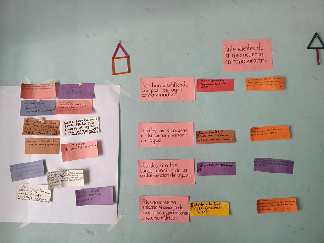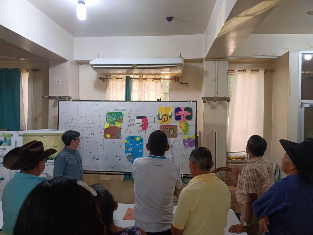 As técnicas de Coddeffagolf fixeron unha charla sobre o impacto na saúde da contaminación da auga e as boas prácticas agrícolas. Os asistentes contaban que cando eles eran pequenos, os seus pais e avós tiñan unhas terras máis fértiles e produtivas, que agora costa moito máis debido o desgaste e maltrato que sufre o solo cos pesticidas e demáis produtos agrícolas. Tamén contan que en ocasións, gran parte da comunidade vese afectada con diarreas e outros síntomas dixestivos pola contaminación da auga do seu uso e consumo. Nesa charla, nunha dinámica puxeron en común as súas actividades e ubicacións para entre todos, poder “monitorear” cal pode ser o problema e así mellorar as prácticas en beneficio de todos. A verdade e que nestas xuntanzas saen conversacións moi interesantes que lles axuda a socializar entre eles, emprender o diálogo e a resolución de conflictos. Para nós tamén é unha forma de entender como funciona o seu traballo e xestión no campo, que no meu caso que son de vila mariñeira, todo é unha novidade.