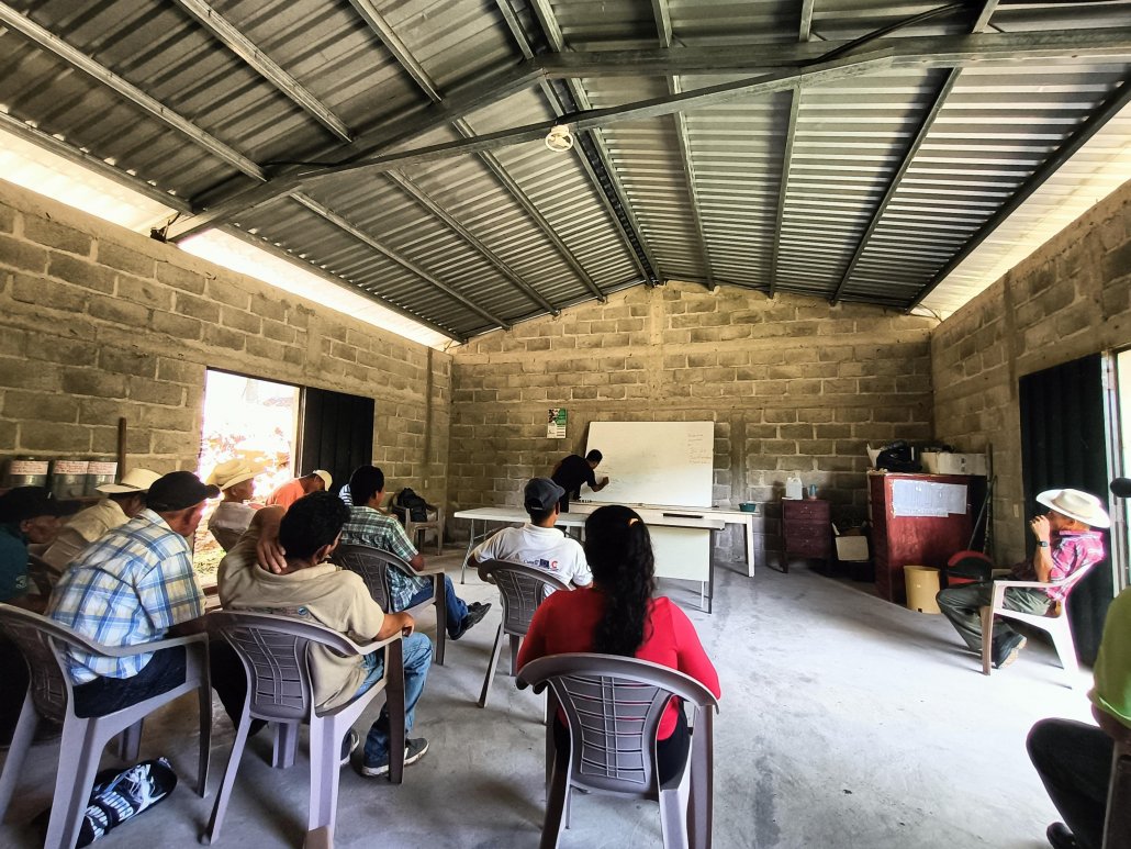 A intensidade de semana chega o fin, cunha saída de campo o venres a Moropocay. O camiño ata alí e toda unha aventura, pero vale a pena polo bonitas que son as vistas e o amable que é a xente alí. Esta vez fomos con Aminta e Onán a reunirnos con persoas do banco de sementes de varias comunidades. Tiñan que poñerse de acordo para delimitar un terreo que se vai a traballar cando remate a canícula e empece a época de choivas constantes outra vez. Traballar as leiras por “tareas” que é unha unidade de medida que utilizan alí.