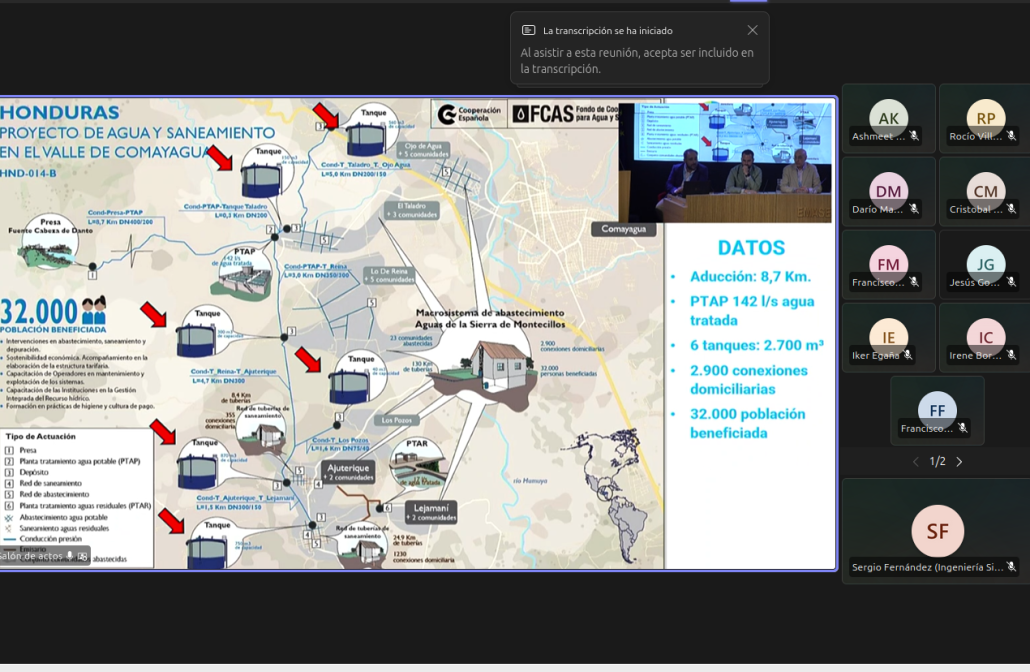 Entre los ejemplos de experiencias, nos llamó la atención el de Aguas de Sevilla (EMASESA) con Aguas de la Sierra de Montecillos, de Honduras, en la zona de Comayagua. Las premisas son sostenibilidad y no centrarse en grandes tecnologías que no puedan mantener. Ya van 35 cooperantes en EMASESA, que han cooperado de forma directa o indirecta. Están haciendo fortalecmiento de juntas de agua, de consejos de microcuenca y también educación.