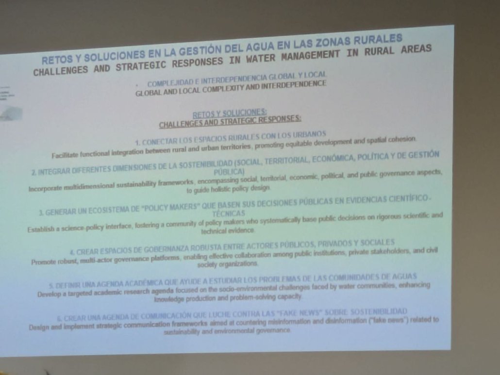 También se insistió en la importancia de corresponsabilizar a las personas en la gestión a través de iniciativas de ciencia ciudadana, pero haciendo que las participantes sientan que su esfuerzo sirve para algo y se tiene en cuenta para la toma de decisiones técnicas. Además, puede ser clave este enfoque para llamar la atención a las comunidades sobre problemáticas que hasta entonces ignoraban o no les hacían caso (como puede ser tema de metales pesados). Se ve importante también el hacer repositorios con material como tecnologías apropiadas, buenas prácticas de gestión y sensibilización, así como indicaciones sobre como investigar en estas áreas de gestión comunitaria del agua (que tiene una parte social y de gobernanza y resistencia social especialmente compleja que hay que acoger e integrar, teniendo en cuenta además la diversidad de género, edad, idioma…).