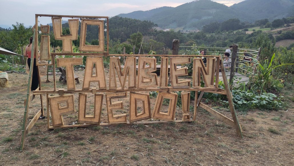 Ademais, como se repetiu en diferentes ocasións nestes días, parece que o conto dos tres porquiños fixo moito dano, porque pensamos que construír con palla, madeira ou barro é de vagos, e o resultado será unha construción inestable. Quén querería construír para quedar sen casa no primeiro temporal? Estes eventos tamén son unha oportunidade para darse conta de que xa hai xente utilizando outros materiais, vivindo en casas de barro e materiais naturais dende fai anos. E o mais importante, un dos lemas do lugar, darse conta de que “eu tamén podo”, de que todas podemos.