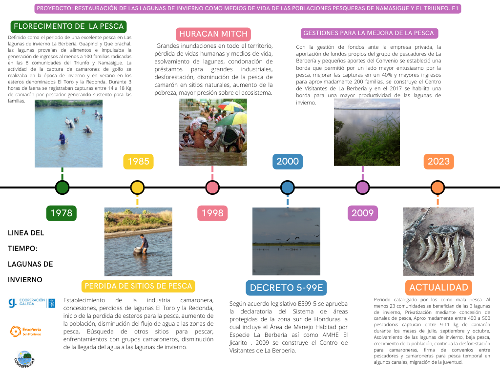 Dadas estas experiencias, y la capacidad de investigación de la socia local y el apoyo de univerisdades (Santiago de Compostela, U. Nacional Autónoma de Honduras), se plantea una intervención de recuperación en las lagunas, así como un monitoreo continuo que permita conocer mejor el sistema y avanzar desde el lado de la prudencia dada la intervención sobre un espacio natural protegido, la cual se hará siempre con las autorizaciones y participación pertinente de la administración titular de obligaciones en materia ambiental y de pesca.