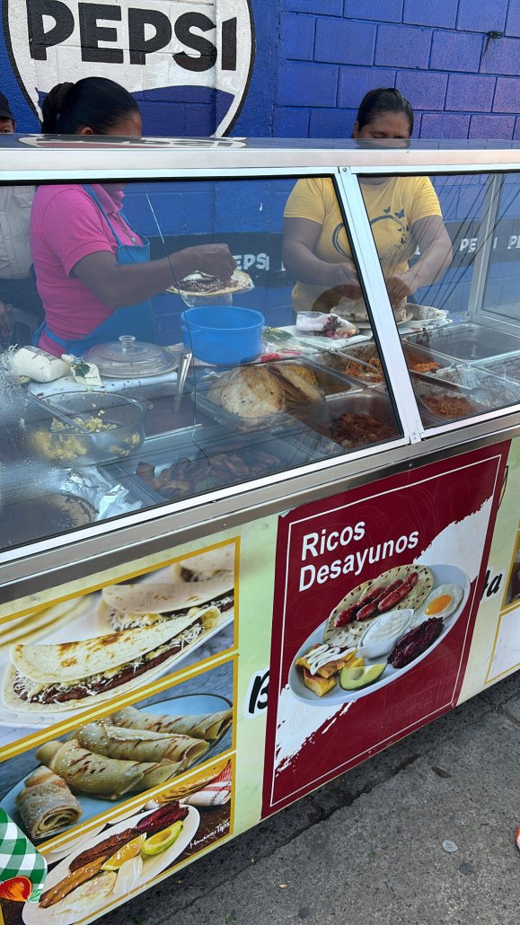 Otro gran cambio para mí ha sido la comida hondureña. ¡Qué descubrimiento! Aquí las tortillas (de maíz o trigo) y los frijoles son la base de casi todas las comidas, acompañados de aguacate, carne, plátano frito… Todo está buenísimo, aunque a veces se hace un poco pesado por la fritura y la sal. Mi plato favorito hasta ahora son las baleadas. Cada mañana y cada tarde, un grupo de señoras las cocina y sale a venderlas en la calle. Siempre hay cola, y cuando las pruebas entiendes por qué: masa de harina, frijoles, queso, huevo, aguacate… ¡una maravilla! También me encantaron los chicharrones, carne de cerdo muy frita (casi como torreznos), con limón, aguacate y queso fresco en una tortilla de maíz. Solo de pensarlo se me hace la boca agua.
