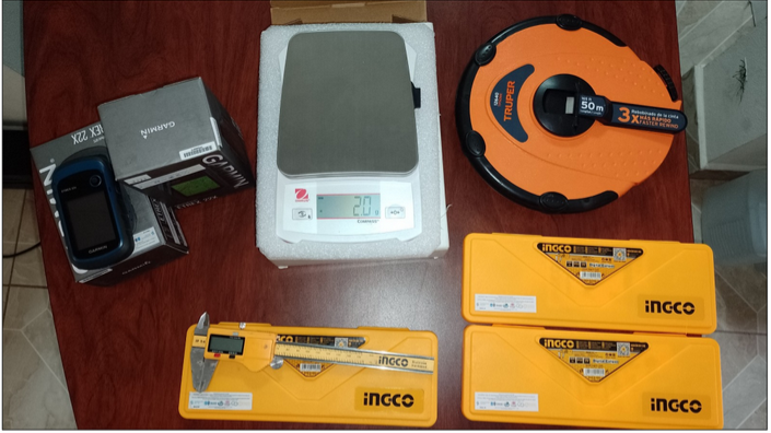 Equipo para monitoreo de bivalvos (balanzas, canastas, cintas metricas, pe de rei, gps, etc).