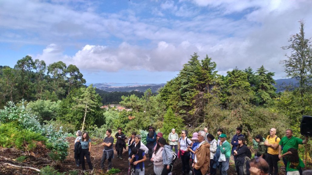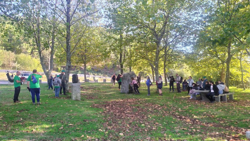 Foi un roteiro polos montes da comunidade, onde nos foron falando do que facían. Resumindo moito, o obxectivo comentaban que era que a xente sentise apego polos seus montes, máis alá de velos simplemente como unha fonte de ingresos económicos, escapando dese concepto productivista.